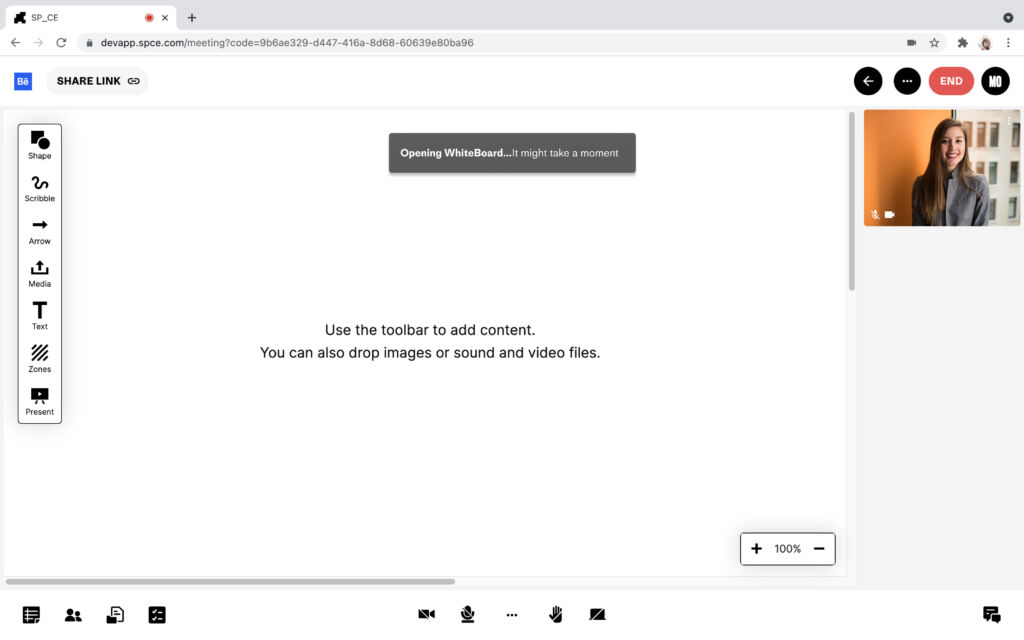 This will open the whiteoard, where everyone will be able to interact, draw and write.