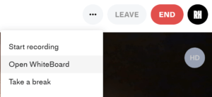 As a host, you can always open the whiteboard by clicking the three dots in your upper right corner and choosing the Whiteboard option.