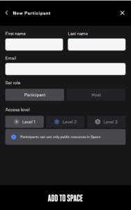 To allow participants to enter a restricted space, you will need to add them to the participant list. They will need to verify their email to enter, which will be done with a unique code that is sent to their email.